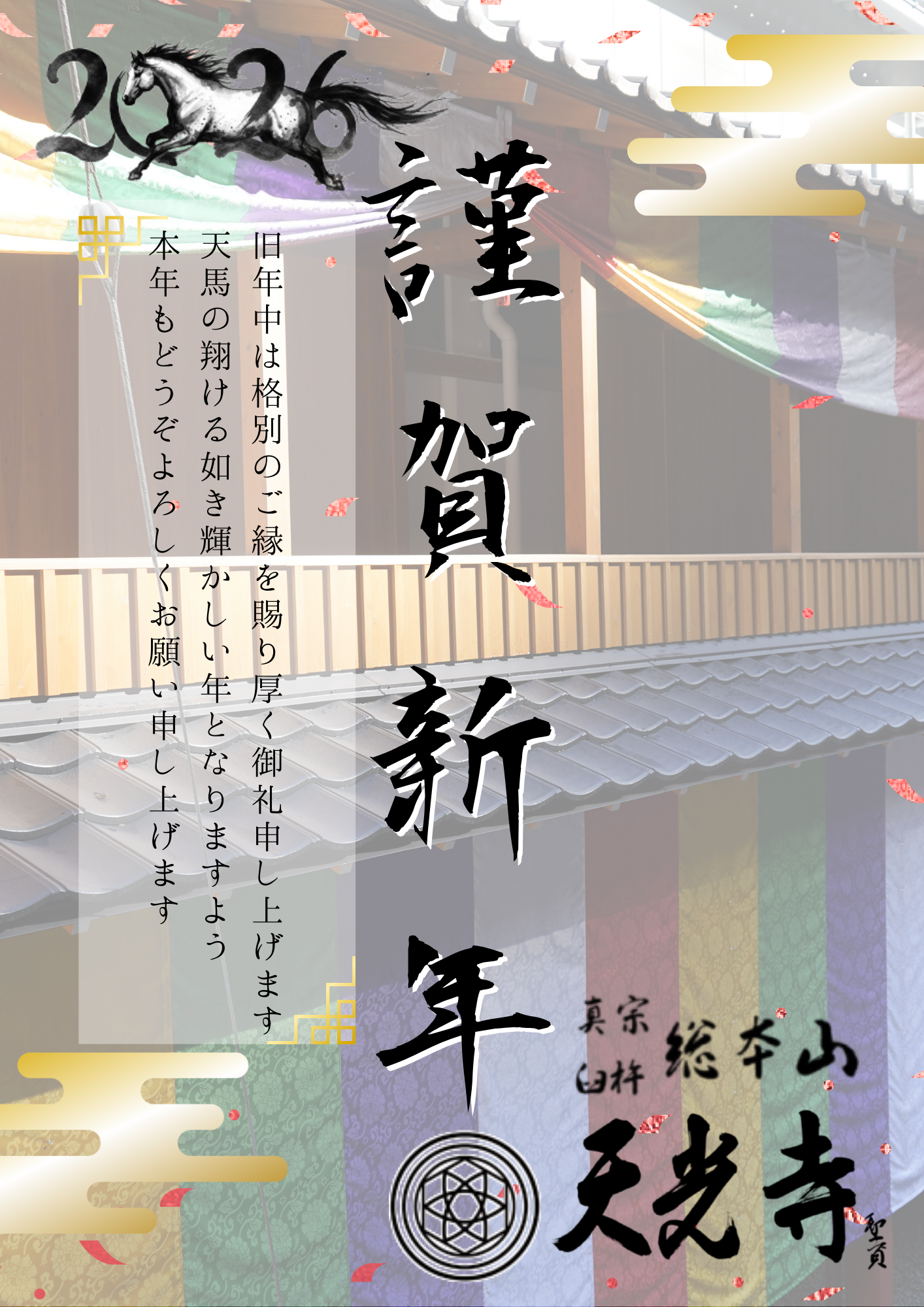 画像にある「天馬」が雲を突き抜け翔けるが如く、本年の天光寺は皆様の「現状打破」と「自己変革」を全力で後押しいたします。
